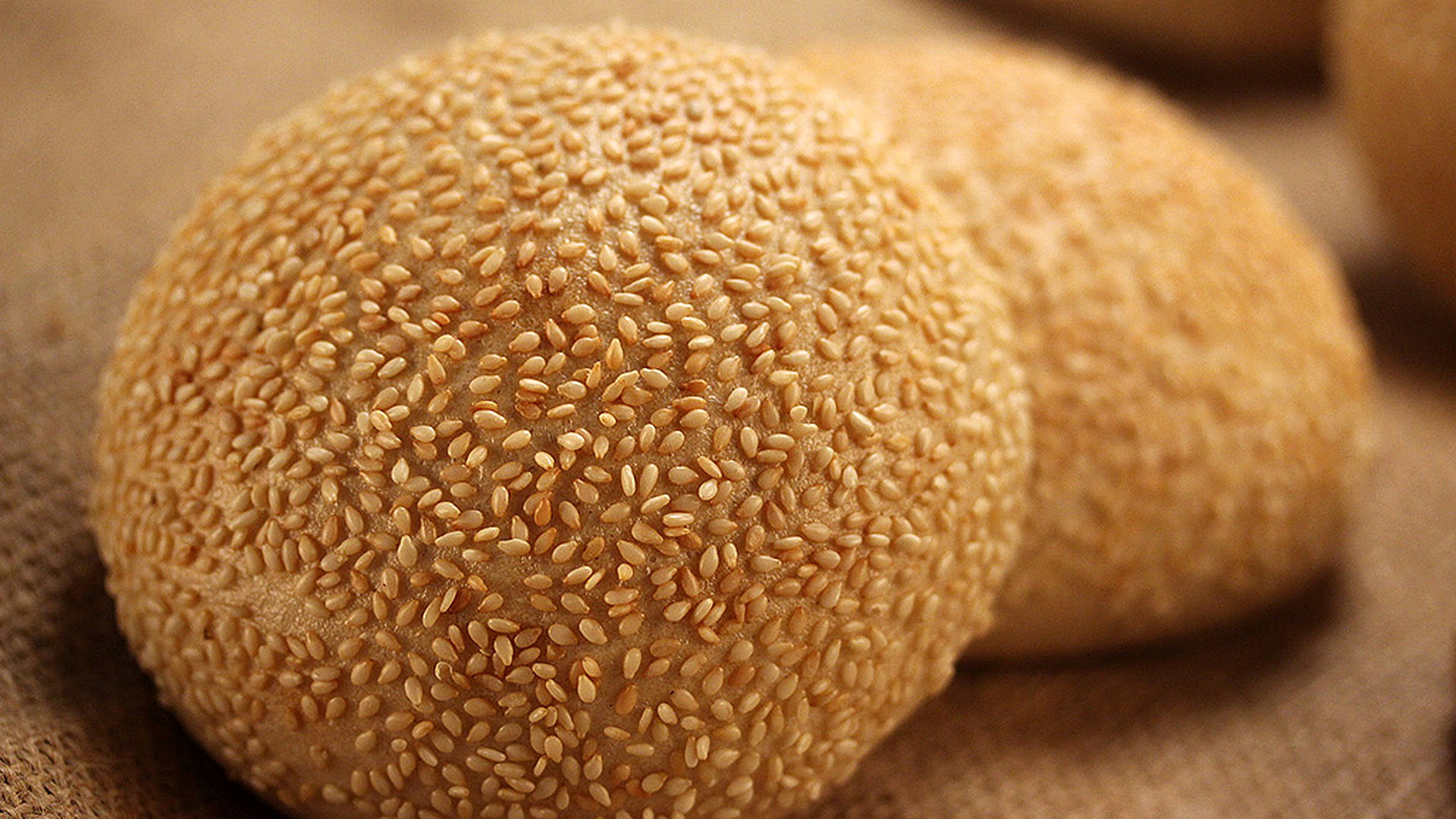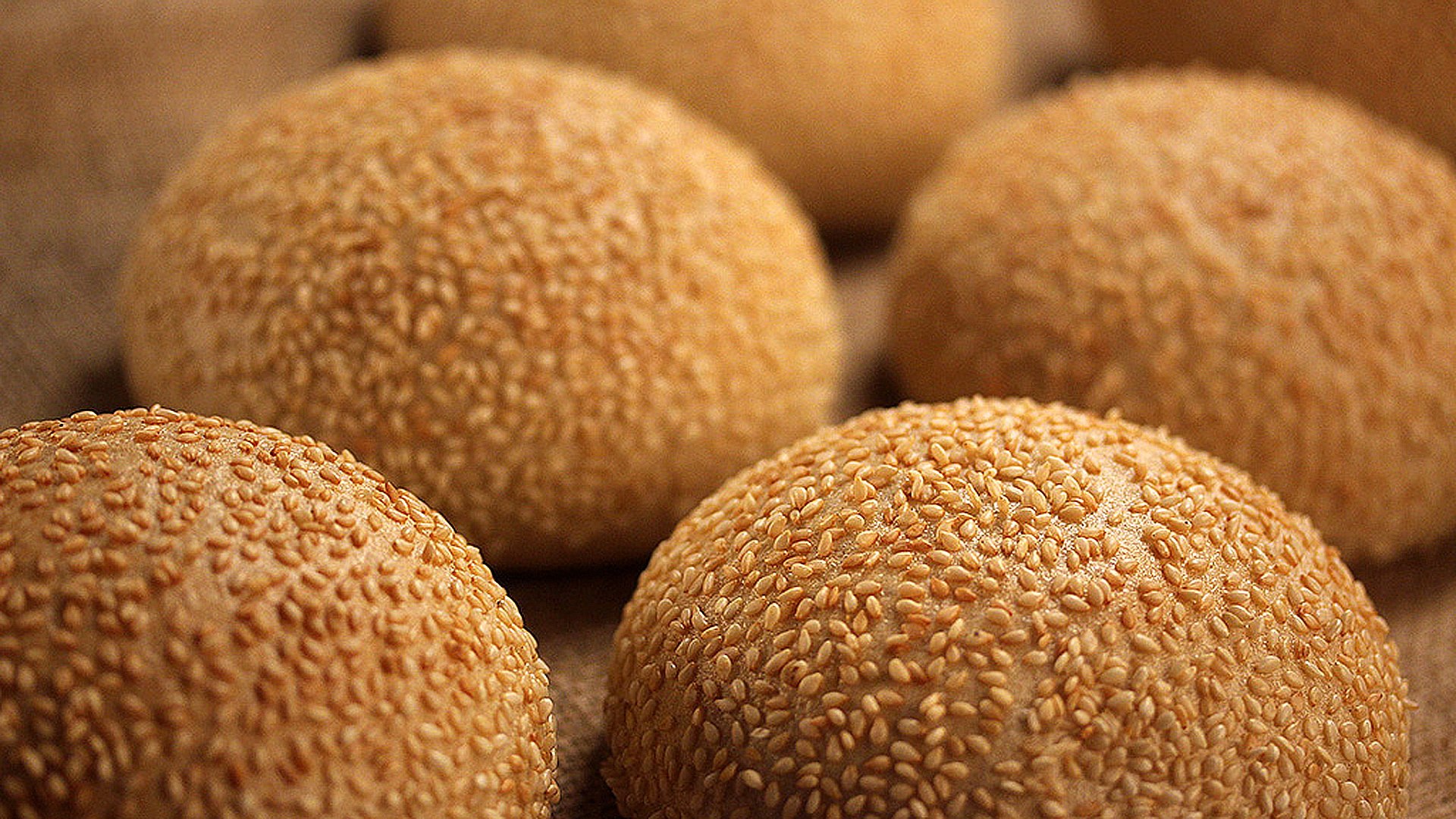 - Das ganze Stück in Sesam legen und zur weiteren Gare auf ein Backblech ablegen.